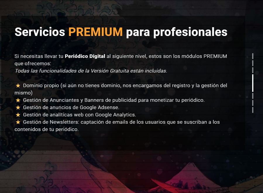 Página oficial de Periódico Digital gratis . Módulos PREMIUM