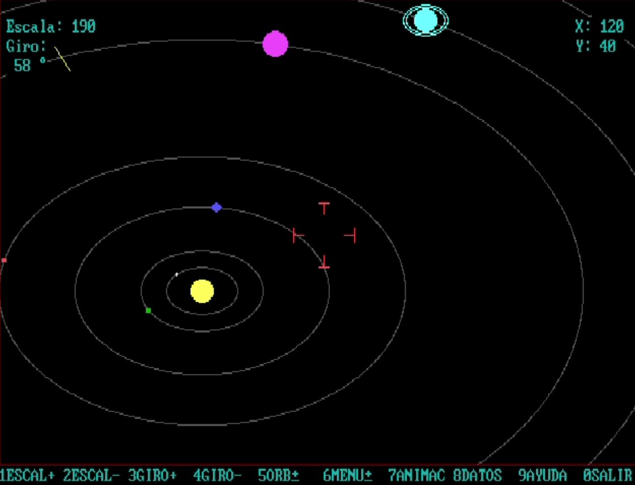 Sistema Solar: Programa en lenguaje GW-BASIC, por Raúl Hernández Caballero, año 1992